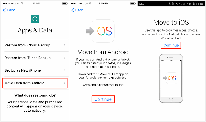 When you start it for the first time, iPhone will prompt you to transfer data from your old smartphone. In this section, select "Transfer data from Android".